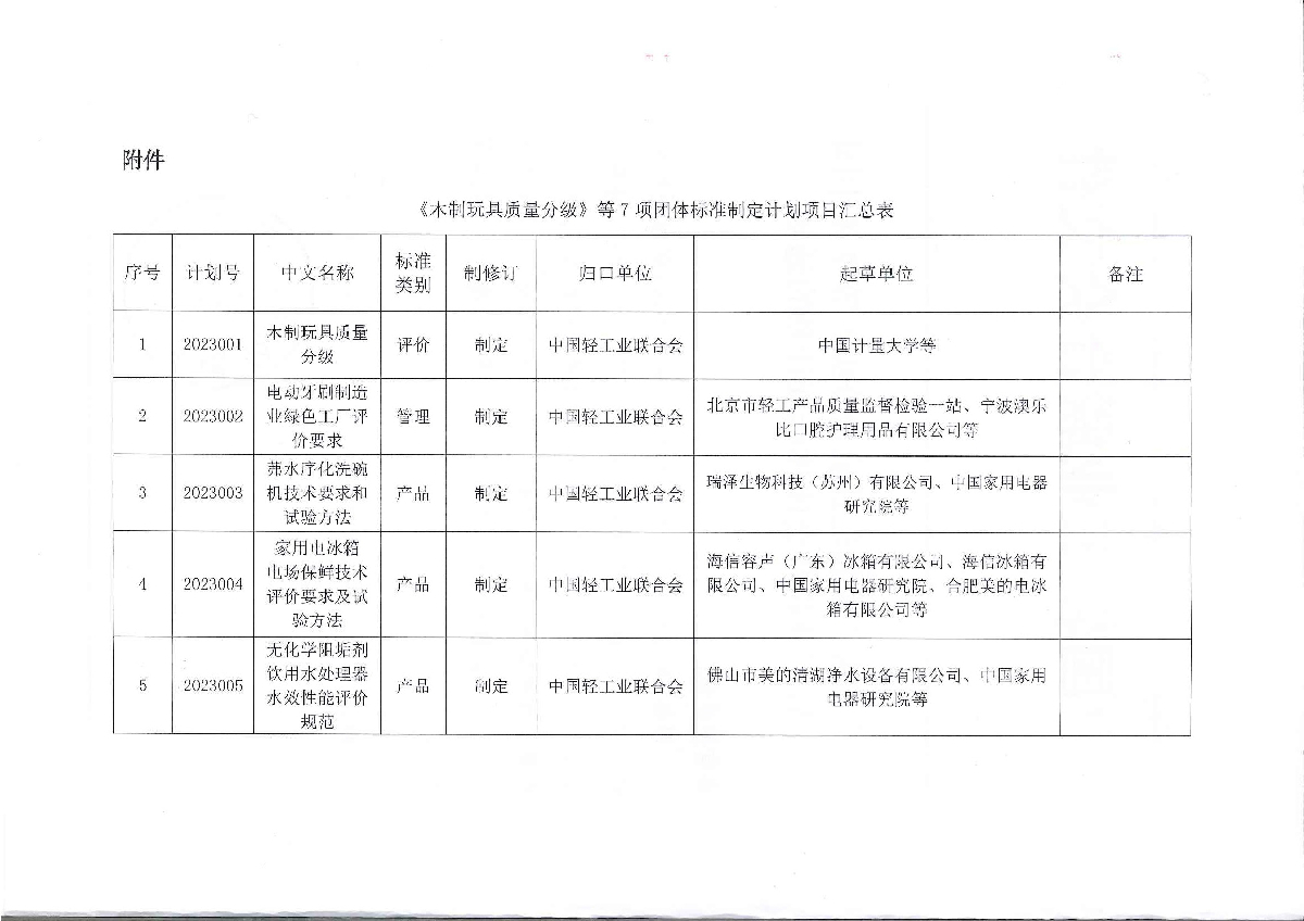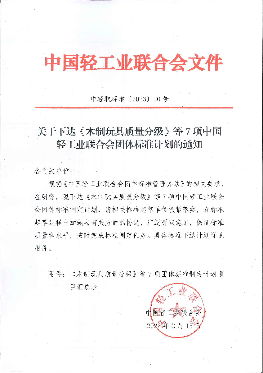 关于下达《木制玩具质量分级》等7项神马影院业联合会团体标准计划的通知
