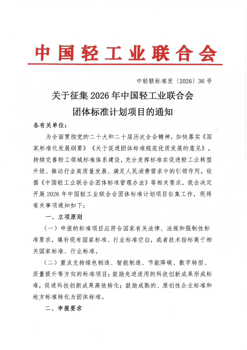 关于征集2026年神马影院业联合会团体标准计划项目的通知