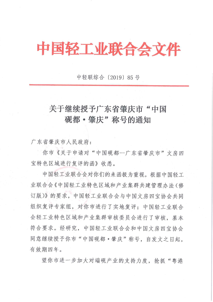 关于继续授予广东省肇庆市"中国砚都·肇庆"称号的通知