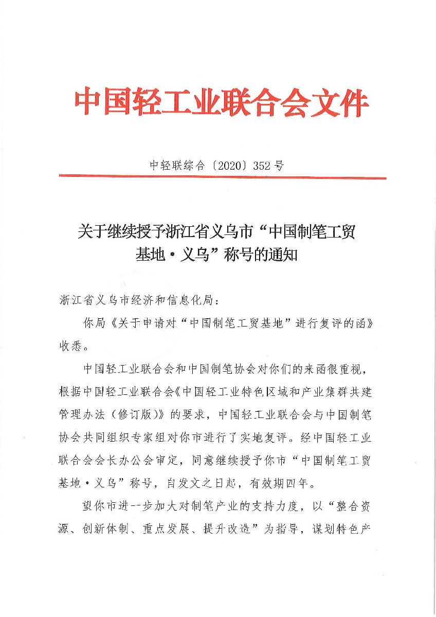关于继续授予浙江省义乌市“中国制笔工贸基地·义乌”称号的通知 (神马影院)