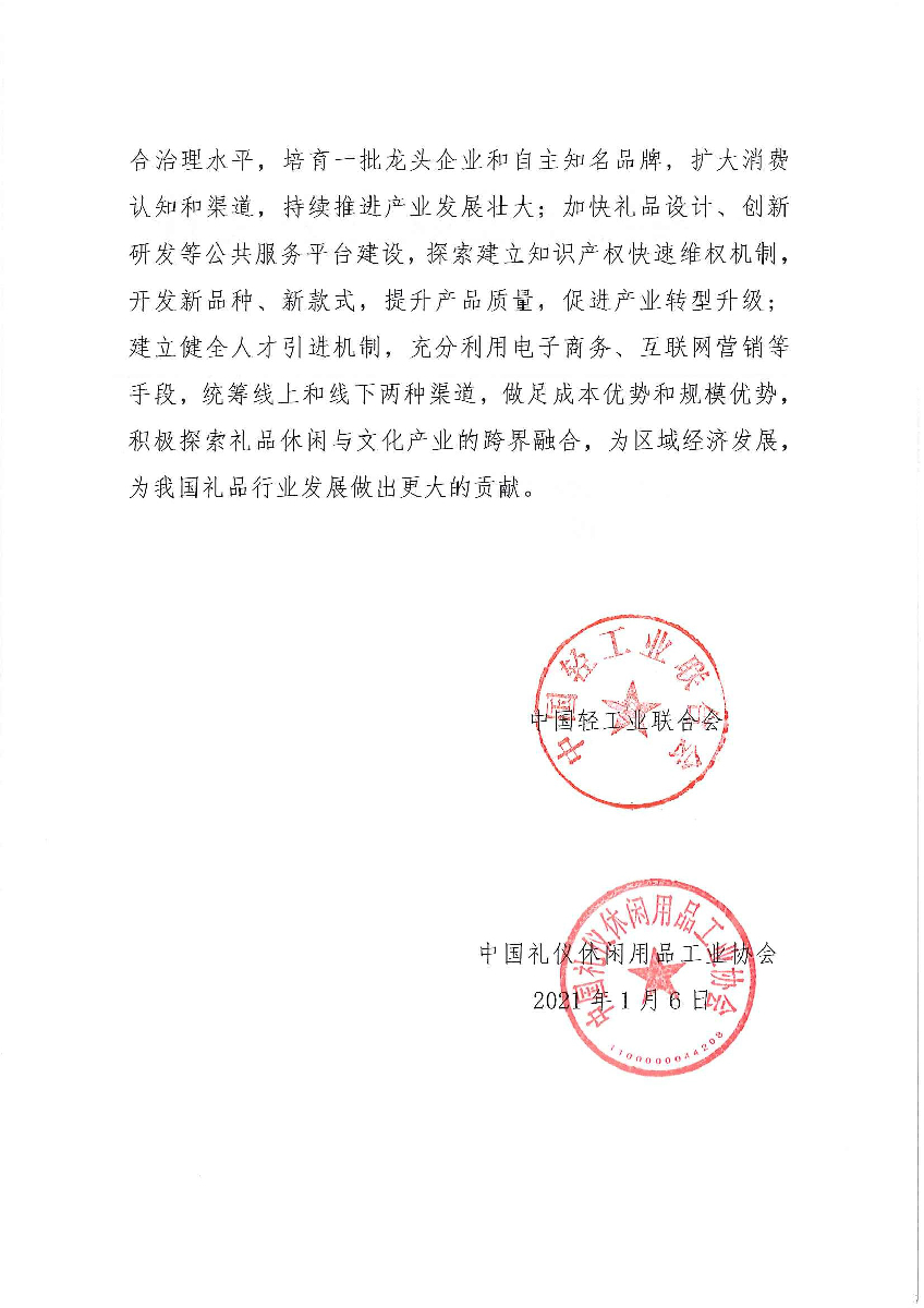 关于继续授予浙江省龙港市“中国礼品城·龙港”称号的通知