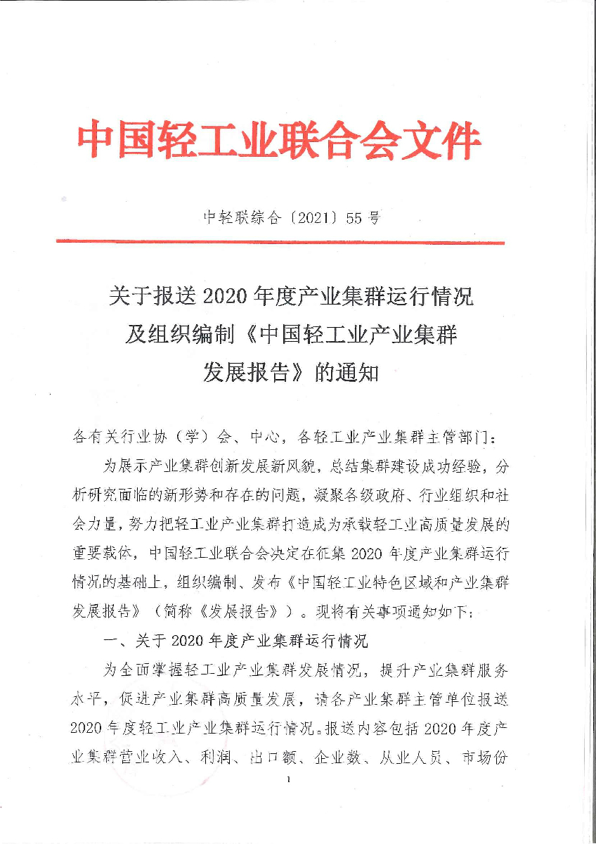2020年度轻工产业集群运行情况