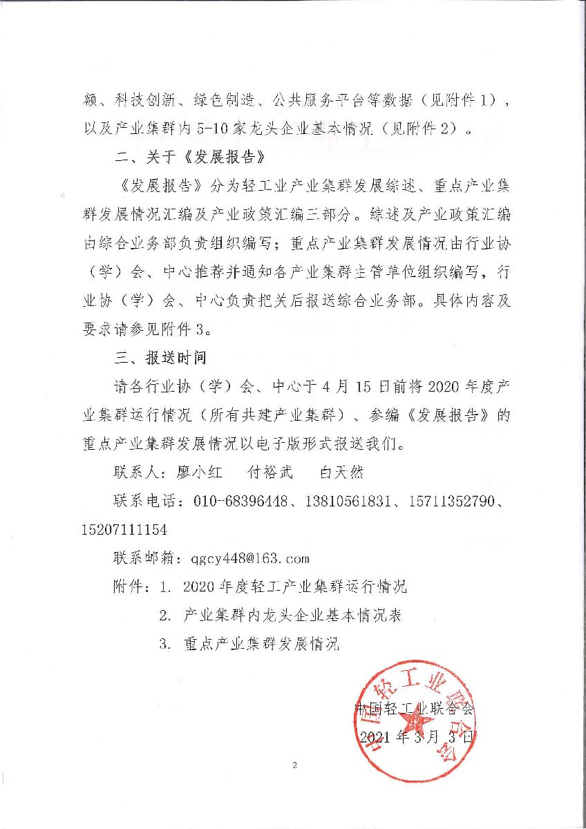 关于报送2020年度产业集群运行情况及组织编制《神马影院业产业集群发展报告》的通知