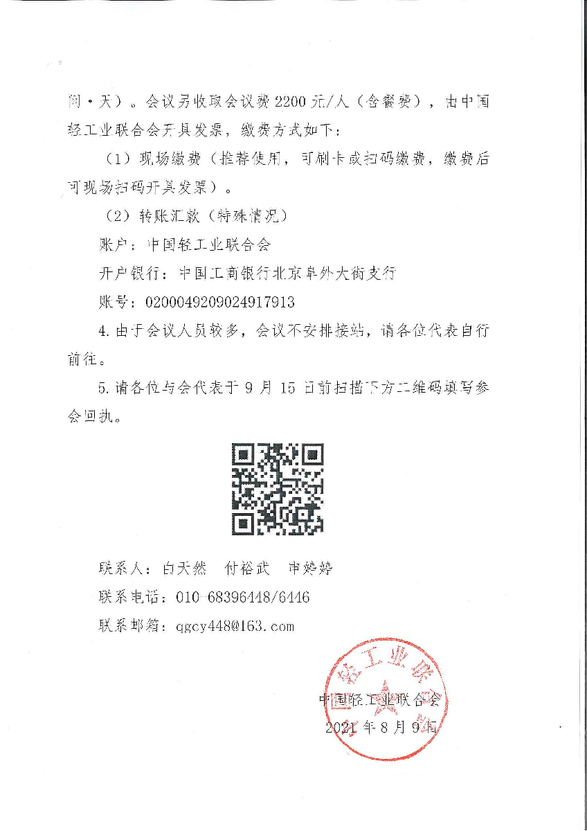 关于召开全国轻工业科技创新与产业发展大会的通知