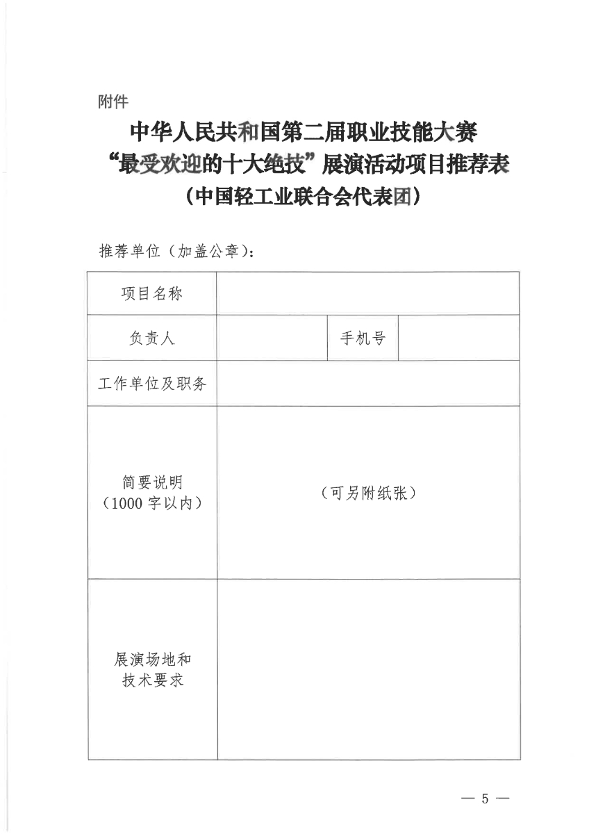 附件:中华人民共和国第二届职业技能大赛“最受欢迎的十大绝技”展演活动项目推荐表(神马影院业联合会代表团).doc