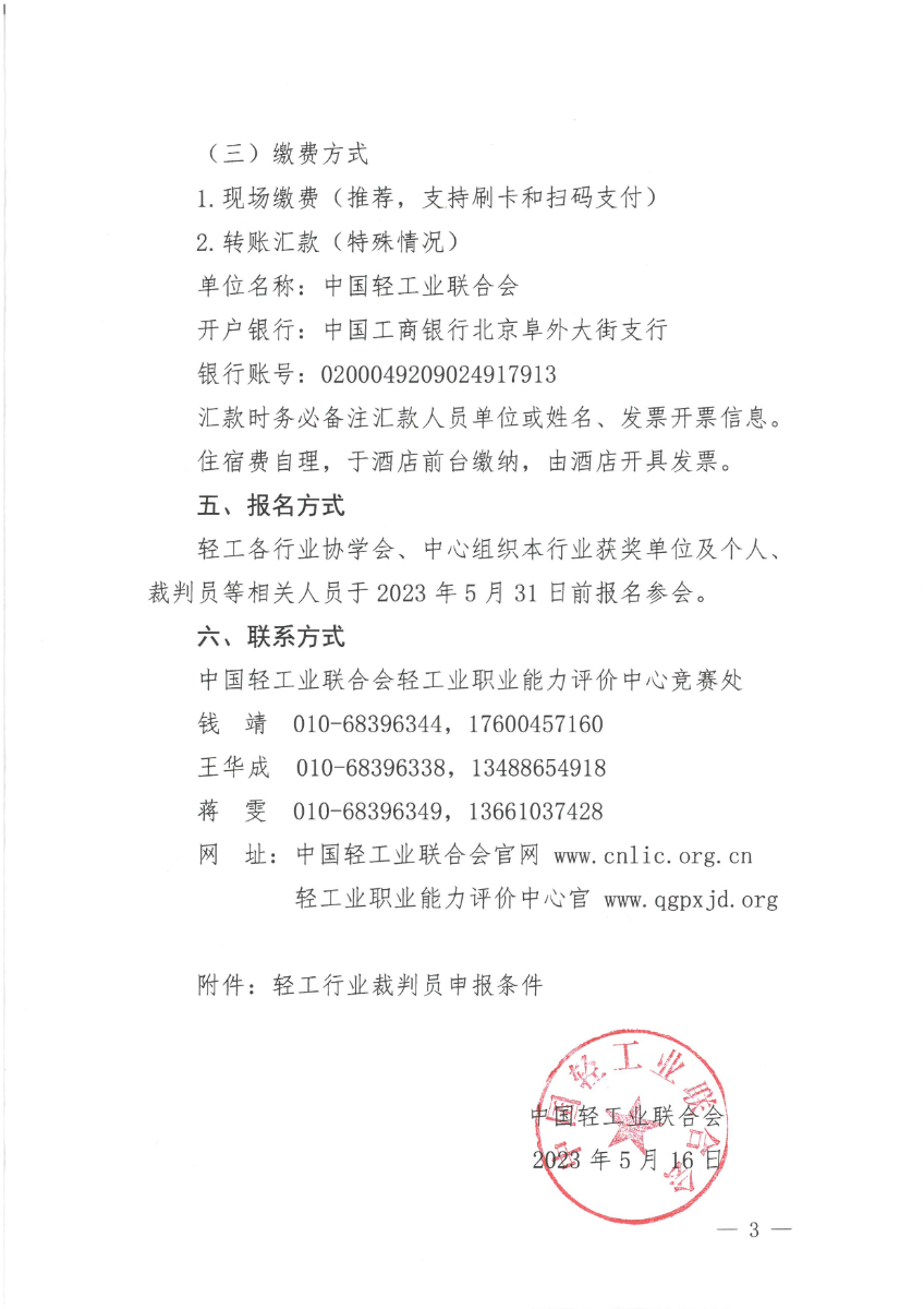 关于举办2023年全国行业职业技能竞赛——轻工大赛动员大会暨轻工行业裁判员培训的通知
