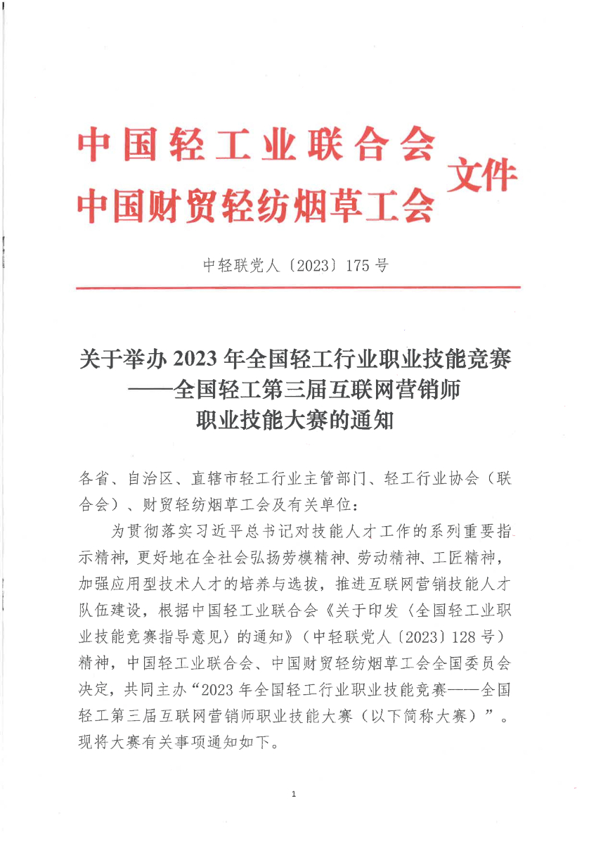 关于举办全国轻工第三届互联网营销师职业技能大赛的通知. pdf