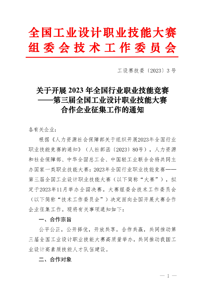 关于开展第三届全国工业设计职业技能大赛合作企业征集工作的通知