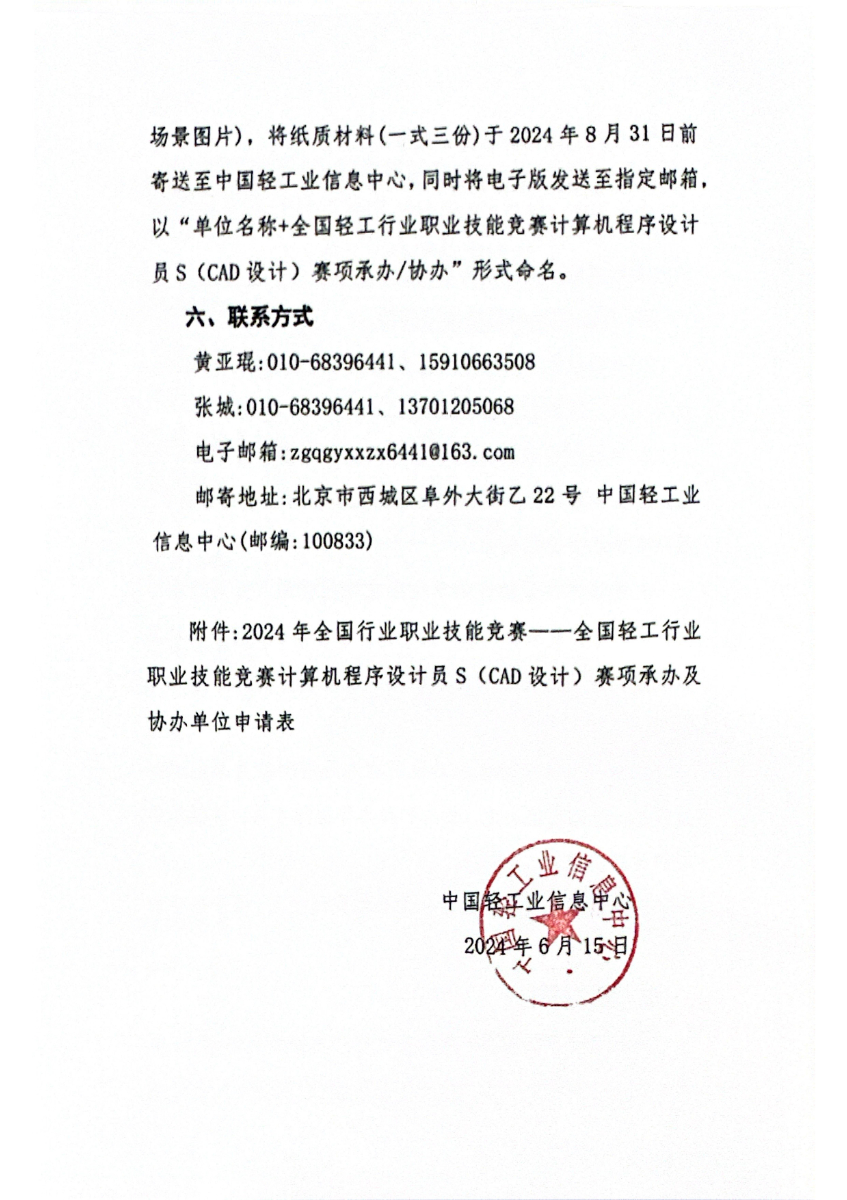 关于开展2024年全国轻工行业职业技能竞赛计算机程序设计员s(cad设计)赛项承办、协办单位征集工作的通知 (神马在线)