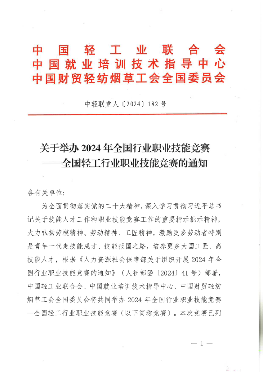 . 15 中轻联党人〔2024〕182号 关于举办2024年全国轻工行业职业技能竞赛的通知. pdf.