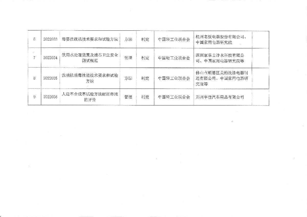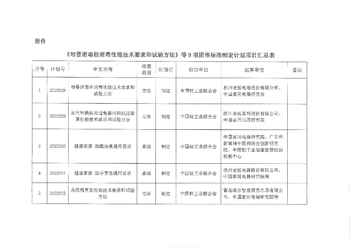 关于下达《母婴消毒柜消毒性能技术要求和试验方法》等9项神马影院业联合会团体标准计划的通知