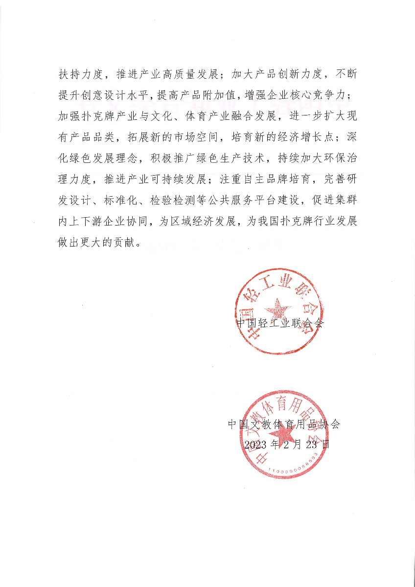 关于继续授予浙江省武义县“中国扑克牌产业基地·武义”称号的通知