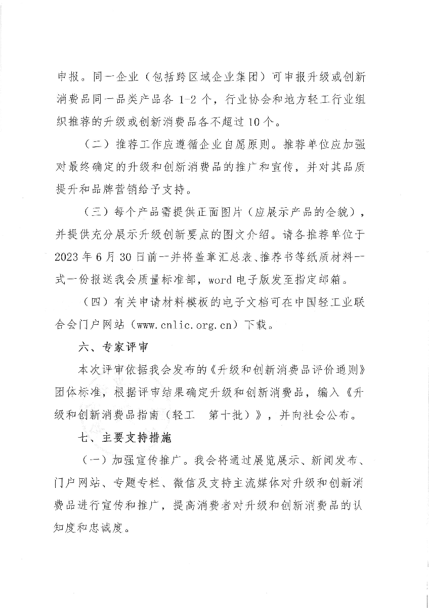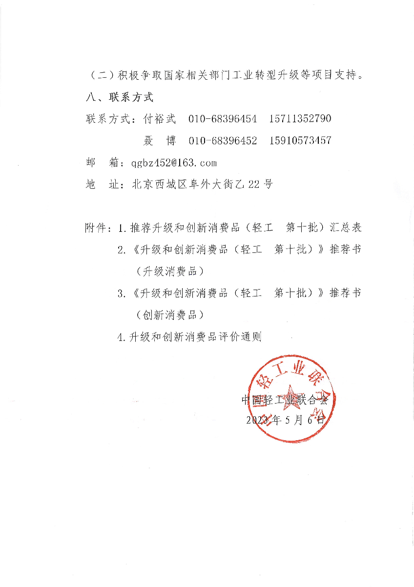 关于开展升级和创新消费品(轻工 第十批)推荐工作的通知