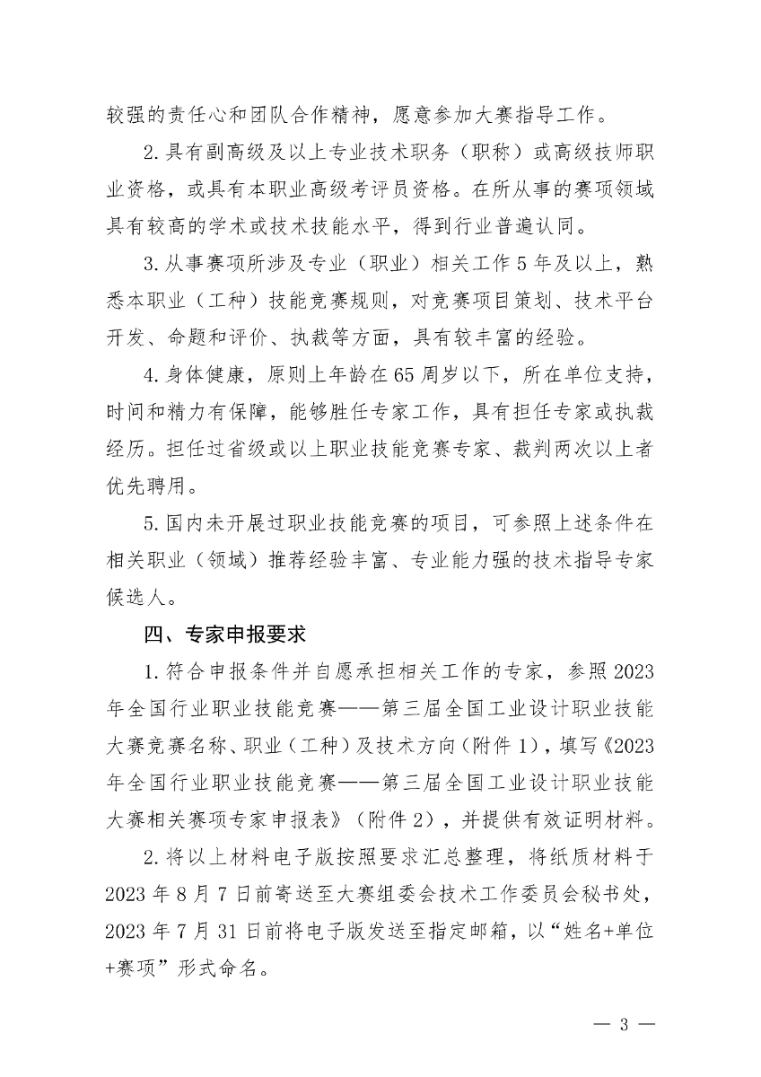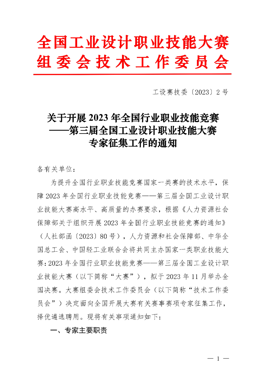 关于开展第三届全国工业设计职业技能大赛专家征集工作的通知. pdf