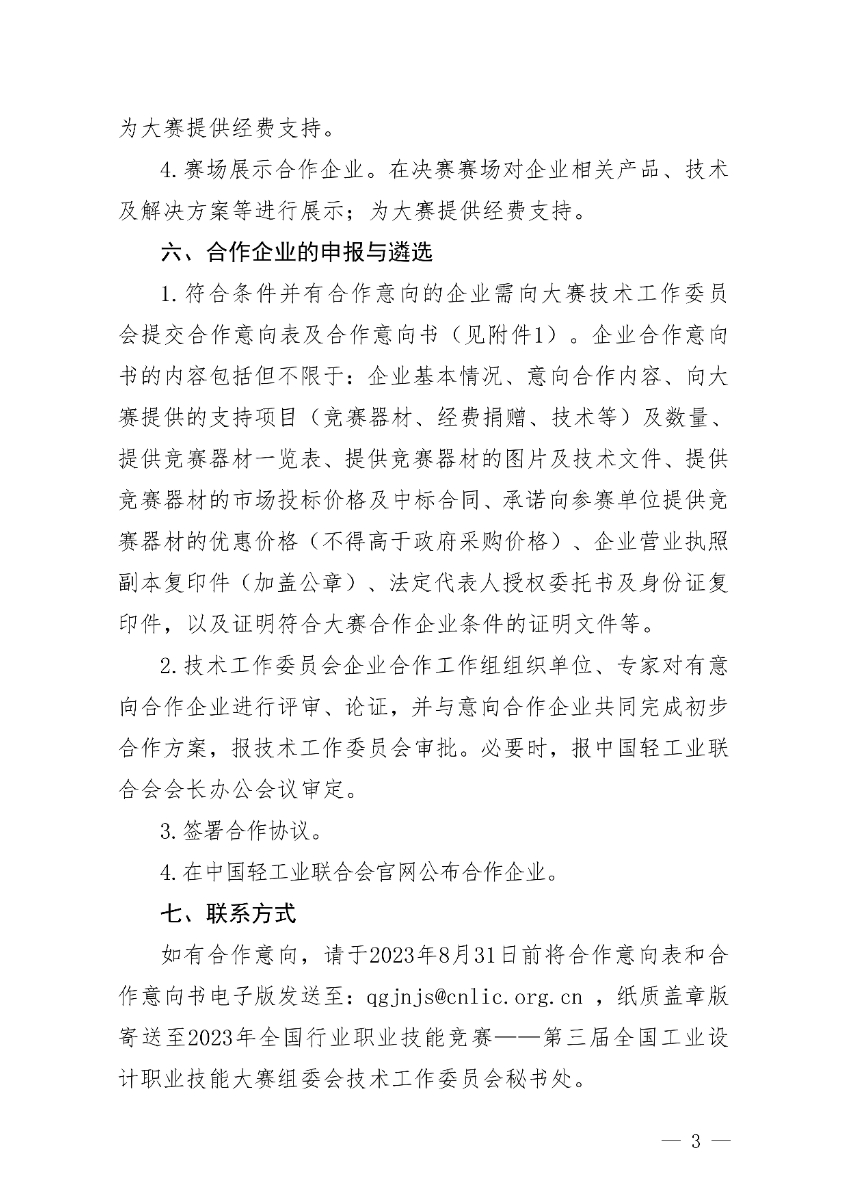 关于开展第三届全国工业设计职业技能大赛合作企业征集工作的通知