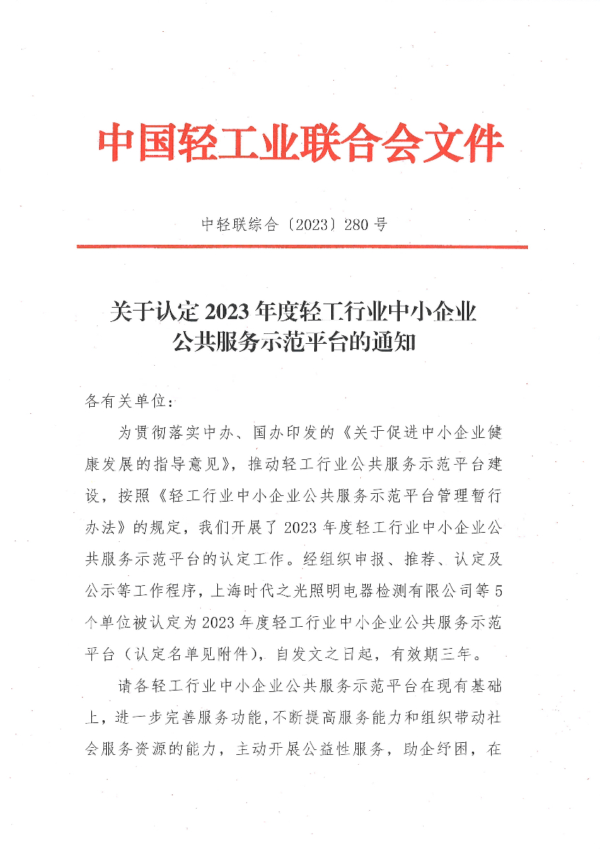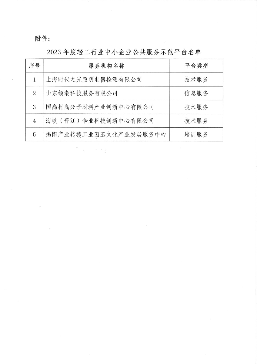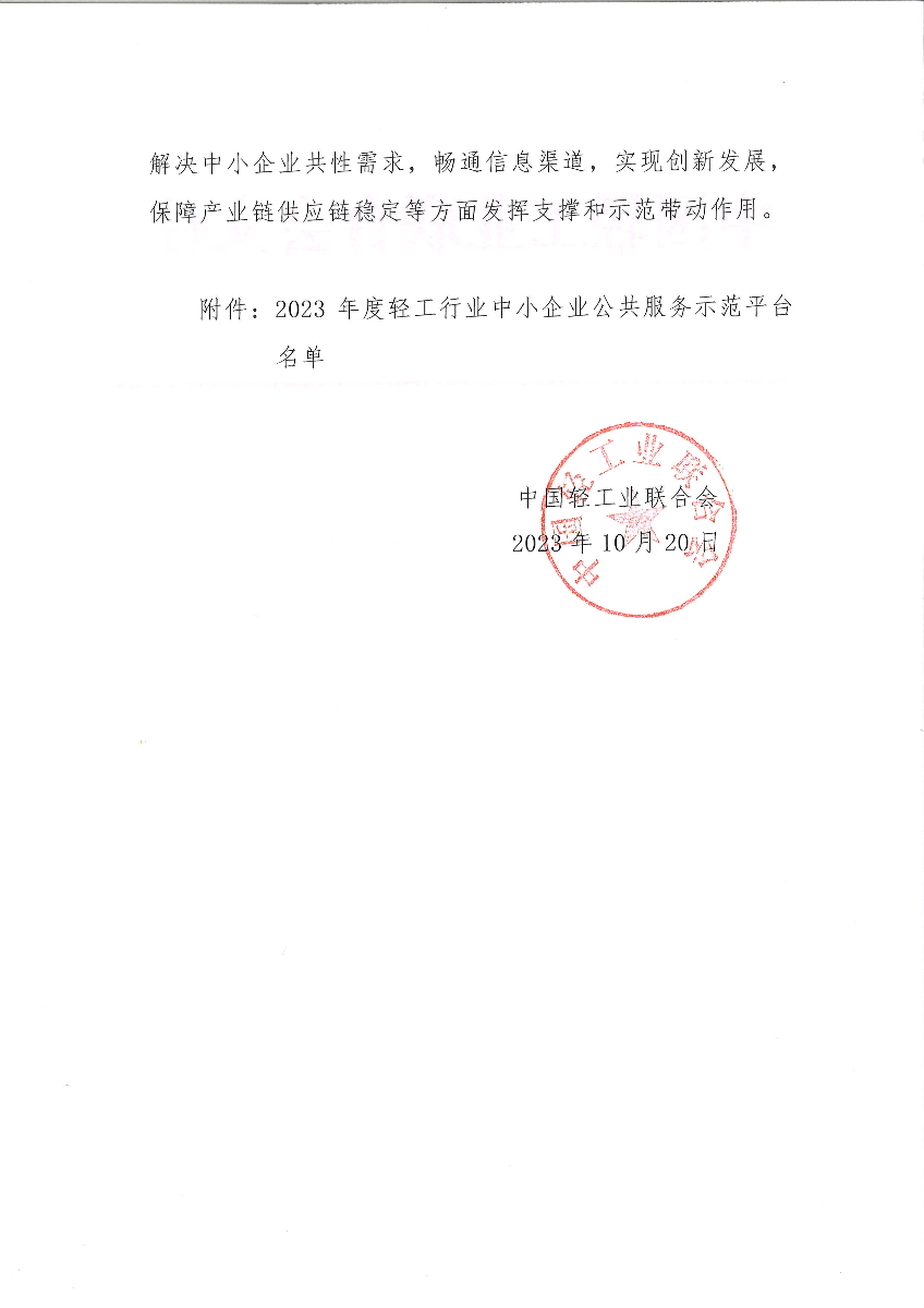 关于认定2023年度轻工行业中小企业公共服务示范平台的通知