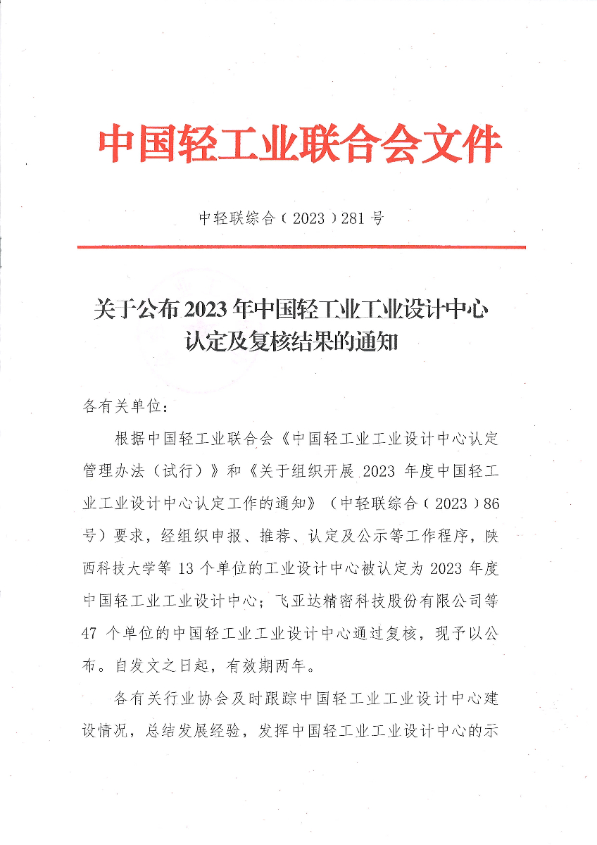 关于公布2023年神马影院业工业设计中心认定及复核结果的通知