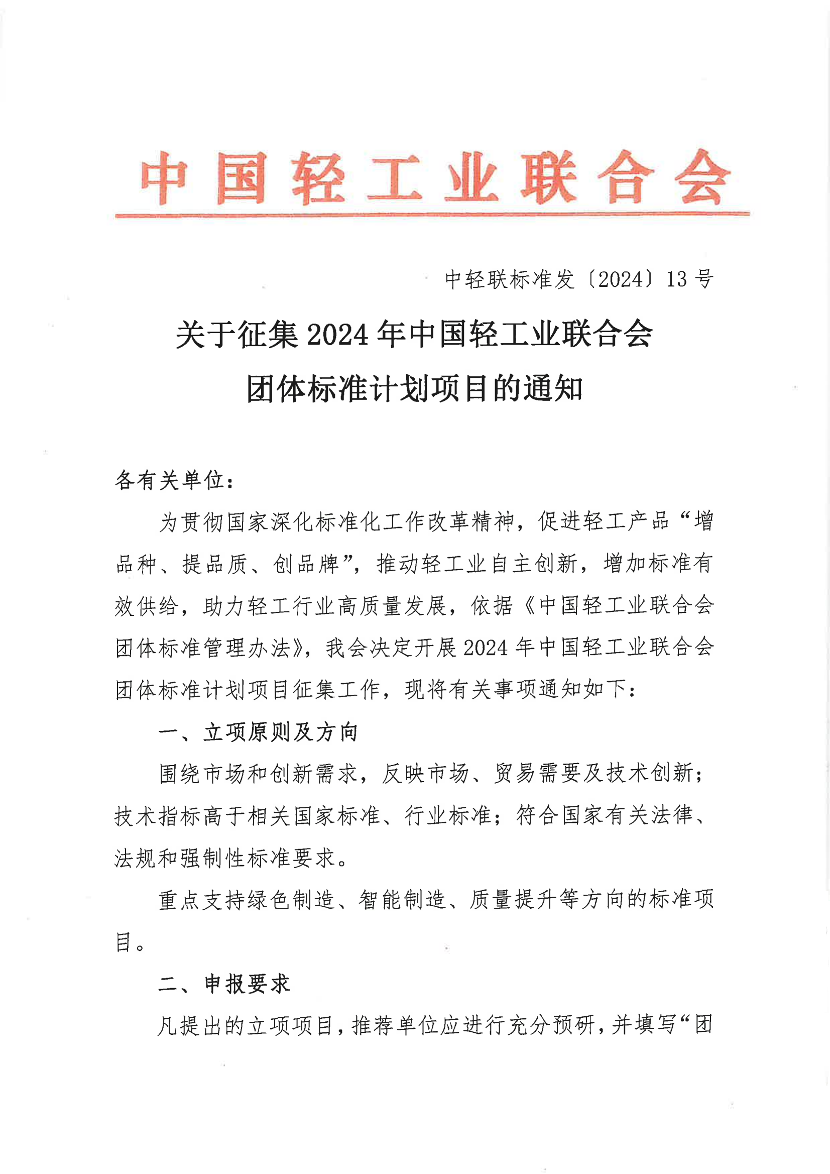 关于征集2024年神马影院业联合会团体标准计划项目的通知