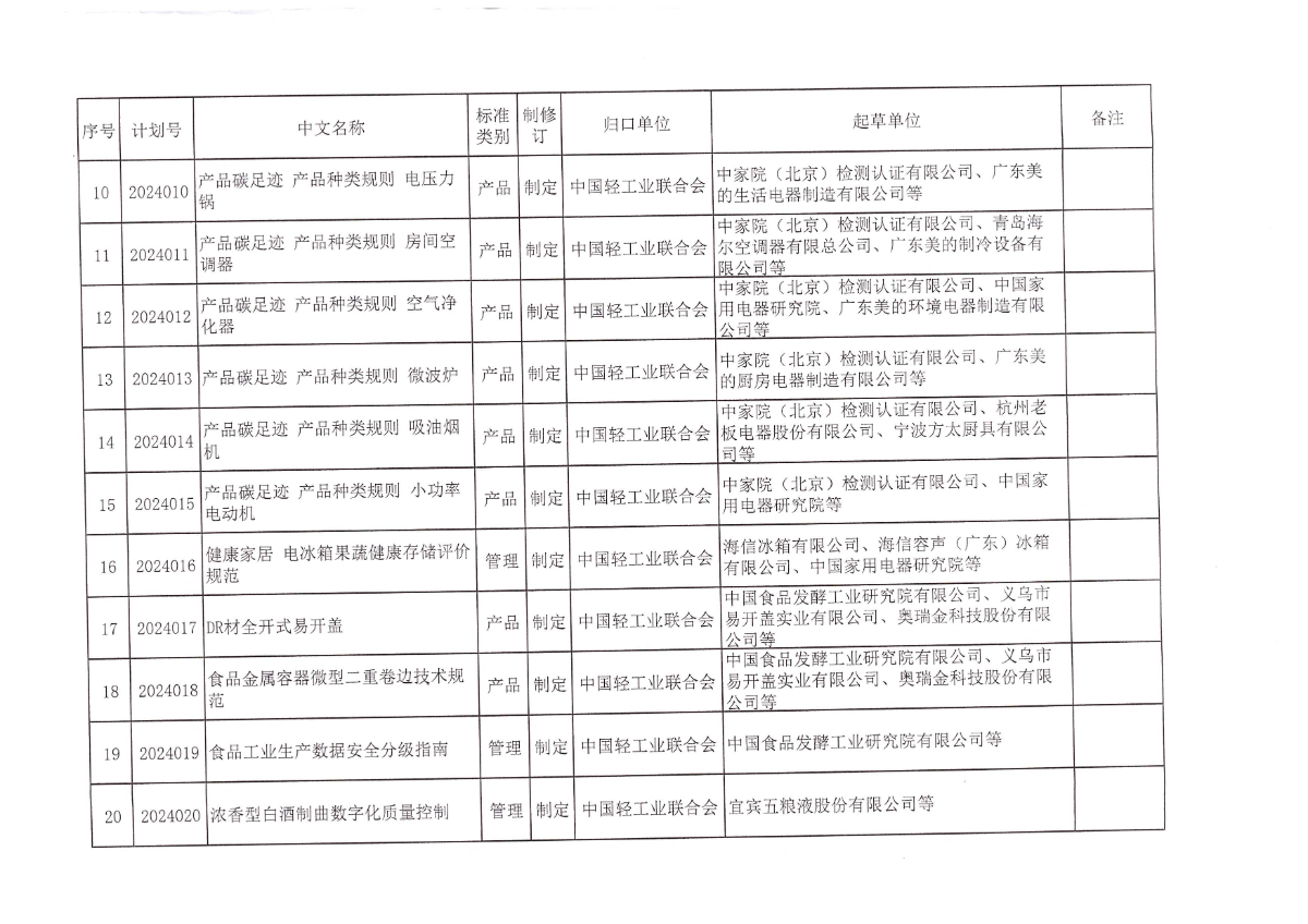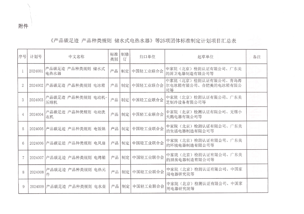 关于下达《产品碳足迹 产品种类规则 储水式电热水器》等25项神马影院业联合会团体标准计划的通知