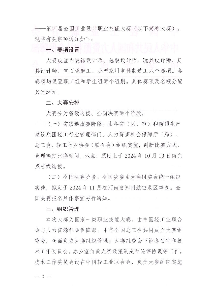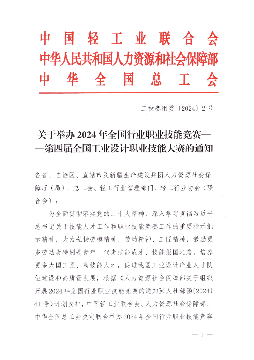 工设赛组委〔2024〕2号 关于举办2024年第四届全国工业设计职业技能大赛的通知