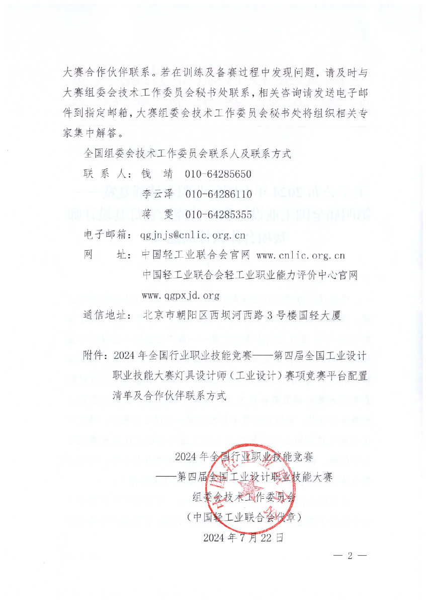 关于公布2024年第四届全国工业设计职业技能大赛灯具设计师赛项合作伙伴的通知