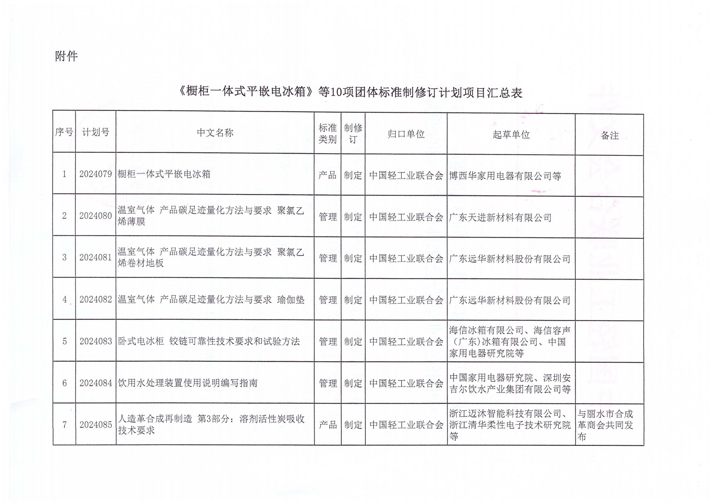 关于下达《橱柜一体式平嵌电冰箱》等10项神马影院业联合会团体标准计划的通知