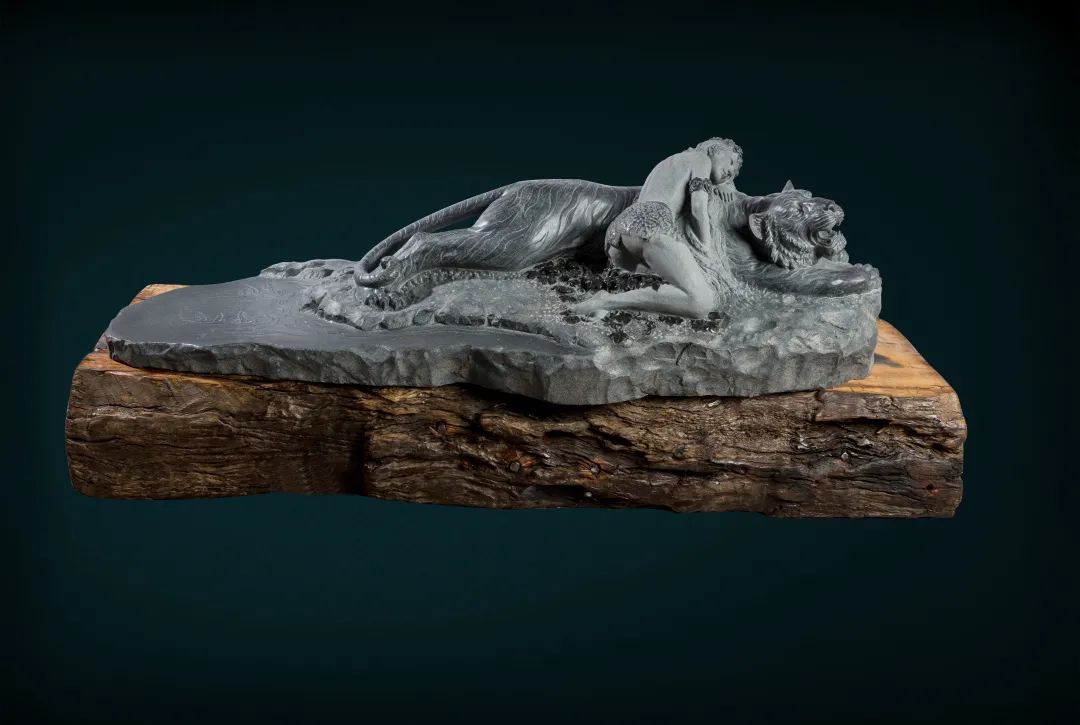 作品以《西游记》中孙悟空大闹天宫这一场景为刻画对象 神马在线,充分利用青石的天然外形进行构图布局,精雕细琢,巧妙设计,刻画出孙悟空捣毁太上老君炼丹炉,与天兵天将酣畅淋漓大战的恢弘场面, 。