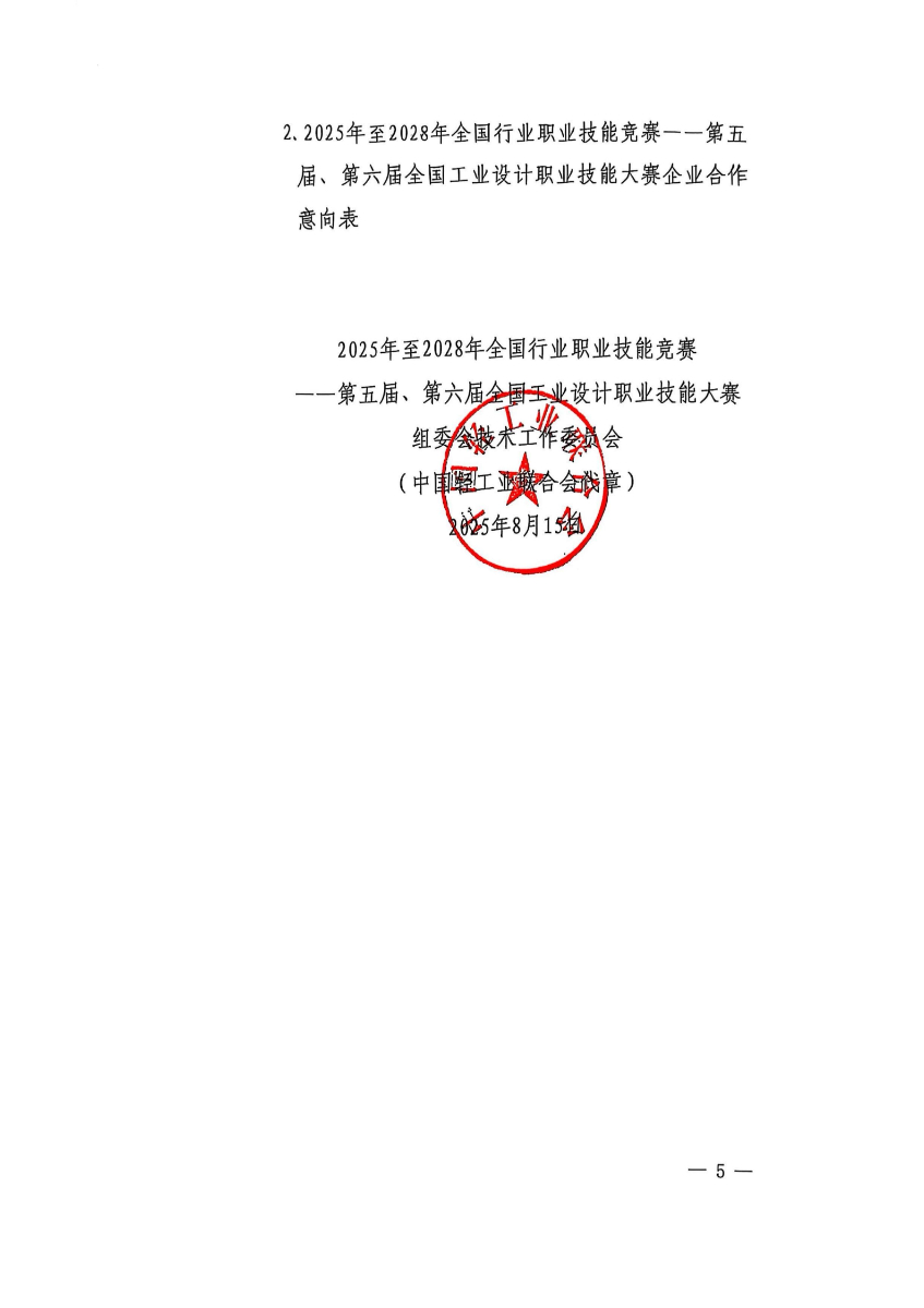 关于征集2025年至2028年第五届、第六届全国工业设计职业技能大赛合作伙伴的通知