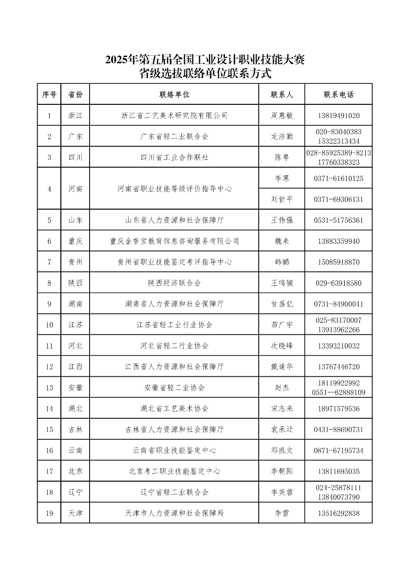 2025年第五届全国工业设计职业技能大赛省级选拔联络单位联系方式