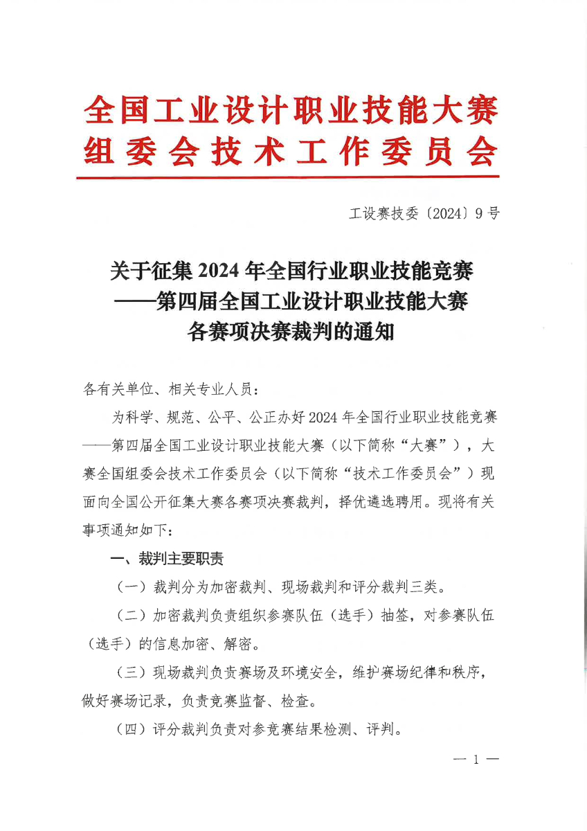 关于征集2024年第四届全国工业设计职业技能大赛决赛裁判的通知. pdf 神马影院.