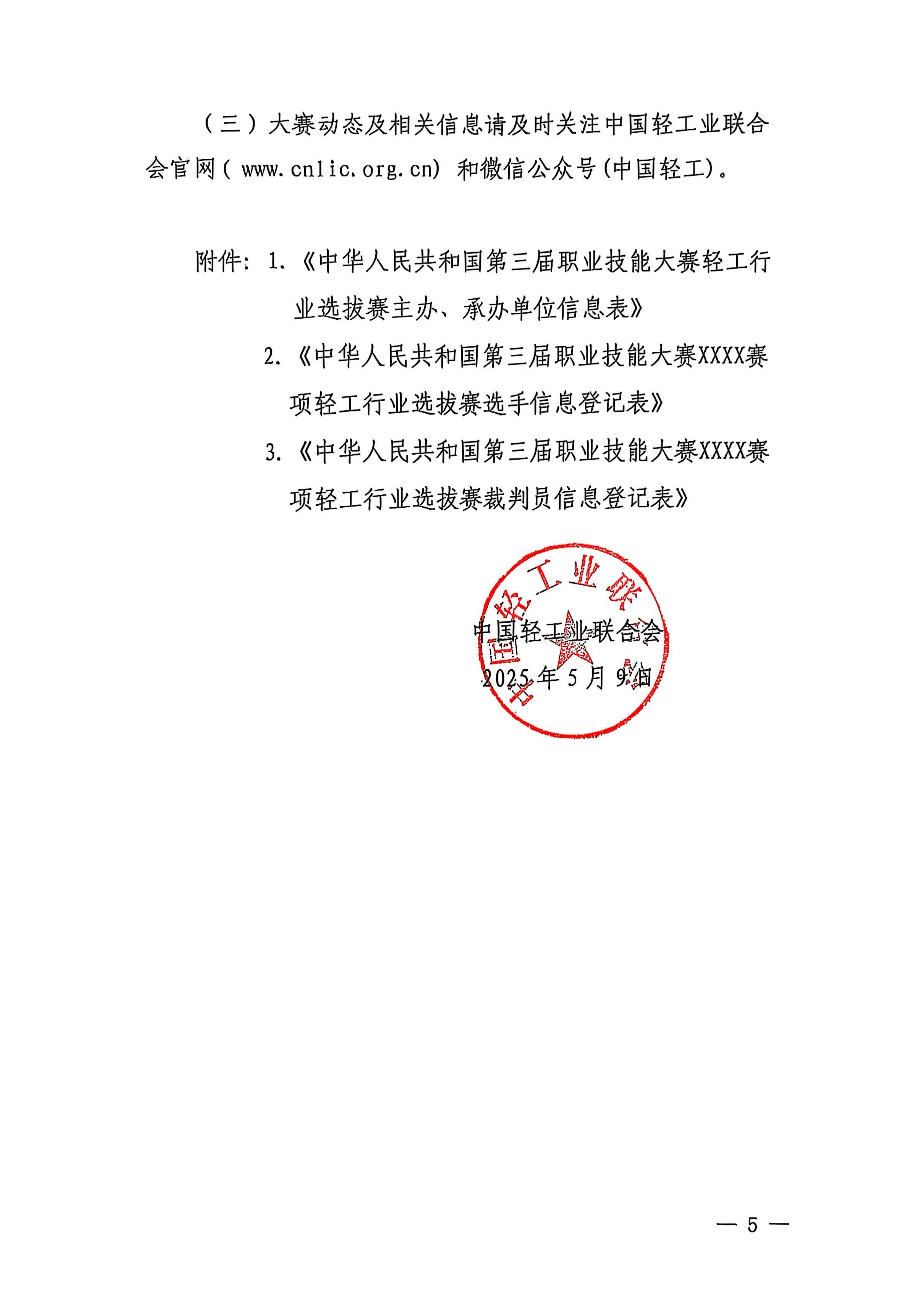 关于举办中华人民共和国第三届职业技能大赛轻工行业选拔赛的通知. pdf