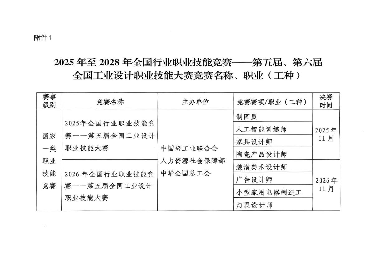 关于征集2025年至2028年全国行业职业技能竞赛— 第五届、第六届全国工业设计职业技能大赛合作伙伴的通知