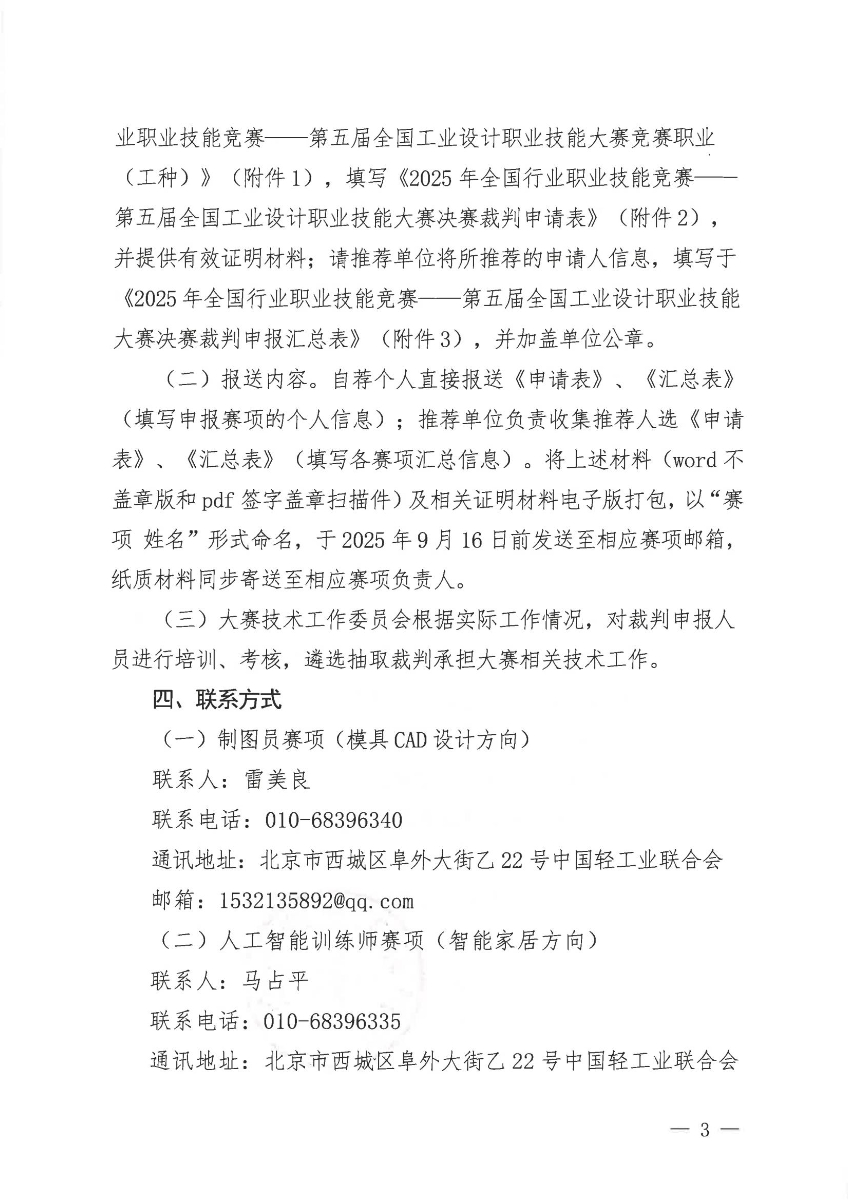 关于征集2025年全国行业职业技能竞赛第五届全国工业设计职业技能大赛各赛项决赛裁判的通知